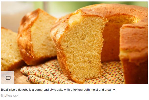 하지만, 브라질 아침 빵의 다양함을 위해서, 볼로 데 푸바(bolo de fuba)를 먹어 보십시오. 옥수수빵 스타일의 케익인데 촉촉하며 크림이 있는 질감에 파마산 치즈 또는 잘게 썬 코코넛이 들어 있습니다. 파운드 케익처럼 슬라이스 형태로 잘라서 제공되며 점심때도 먹는 음식입니다.