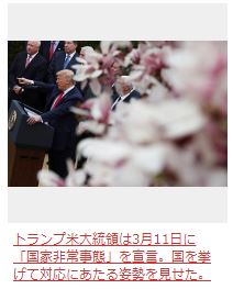 2020년 11월에 있는 대통령 선거에서의 재선이 “코로나 불경기”로부터 위기를 맞고 있다는 불편함에서, 트럼프 대통령이 전미국의 외출금지령을 발표한다는 거짓 뉴스도 이 1주간 정도 연쇄 편지로 퍼지고 있습니다.